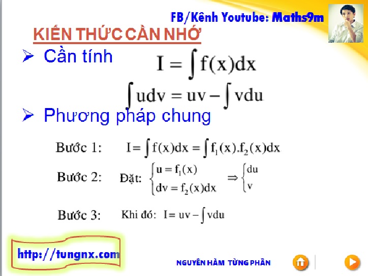 Cùng với phương pháp đổi biến số, nguyên hàm từng phần là một trong hai phương pháp để tìm nguyên hàm, tính tích phân. Việc nắm chắc các dạng tính nguyên hàm từng phần, sẽ giúp bạn giải được rất nhiều bài toán tìm nguyên hàm. Đây là bài giảng thuộc phần nguyên hàm – tích phân. Là nội dung của chương 3 của giải tích 12 – chương trình toán lớp 12.